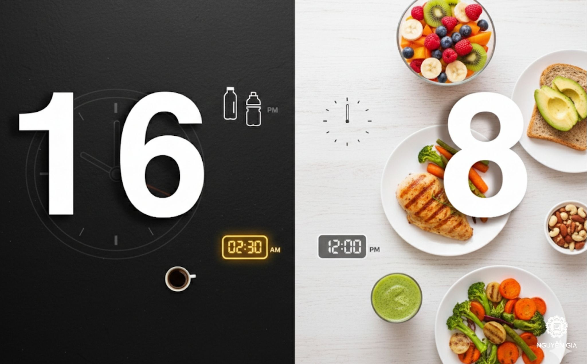 Lưu ý: Trong 16 giờ nhịn ăn, chỉ được phép dùng các loại đồ uống không chứa calo như nước lọc, trà xanh không đường hoặc cà phê đen nguyên chất để giữ cho cơ thể luôn trong trạng thái đốt mỡ.