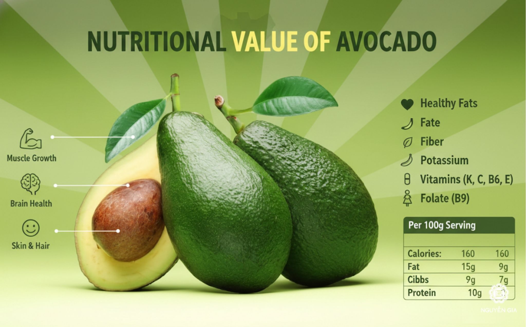 | Thành phần | Hàm lượng (trên 100g bơ tươi) |